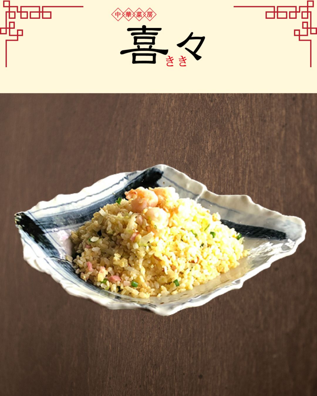 当店人気の「喜々チャーハン」は、一口食べればその美味しさが広がり、幸福感に満たされるはず!