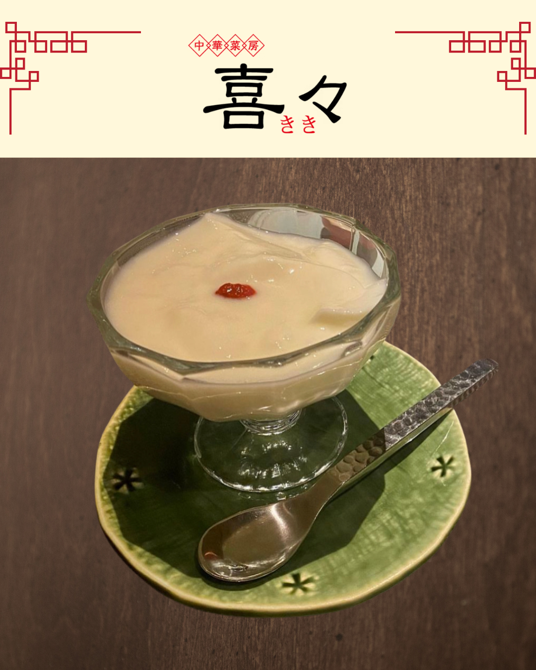 落ち着いた店内で本格中華を堪能した後は、【中華菜房 喜々】自慢の「杏仁豆腐」で至福の時間を。🌿