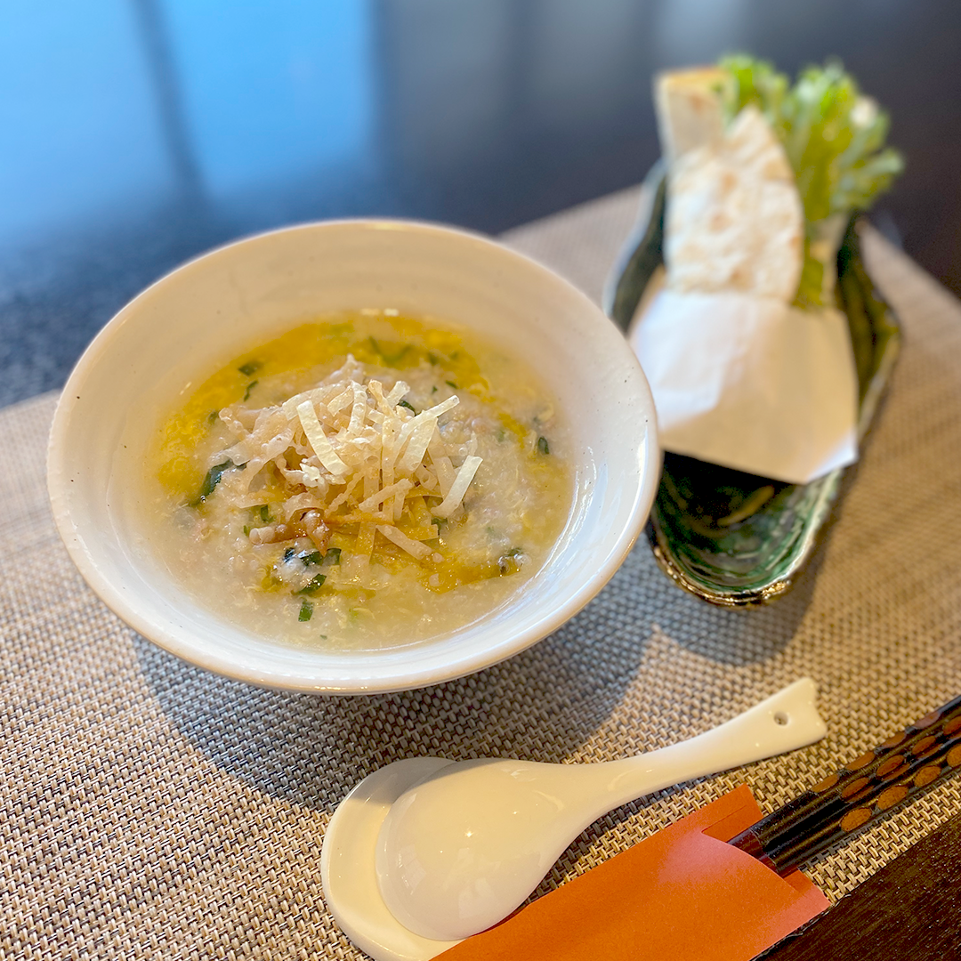 あっさり系の野菜粥や季節野菜炒めでヘルシー。食後にはジャスミン茶、ウーロン茶、プーアール茶で心も体もリフレッシュできます。
